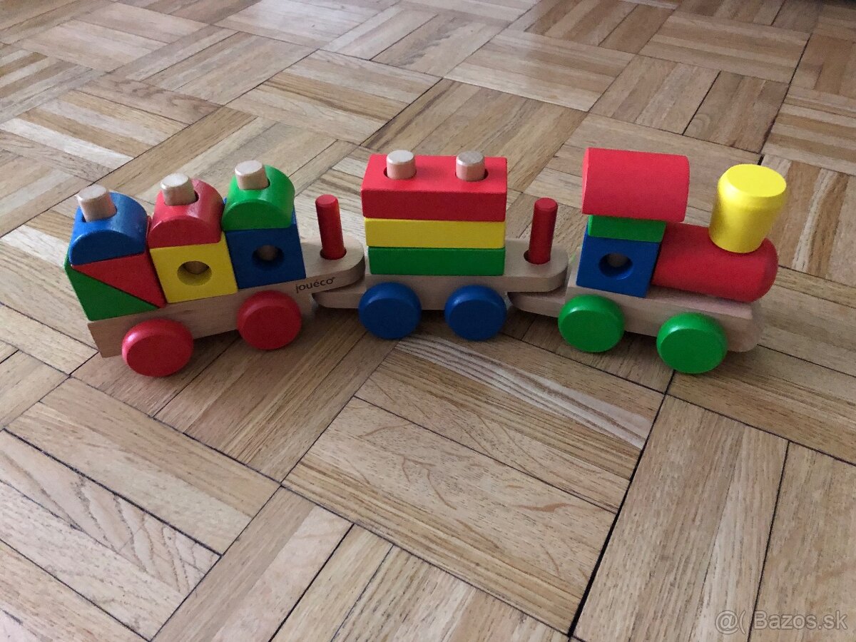 Predam vkladacku dreveny vlacik v peknom hranom stave, bez poskodeni.