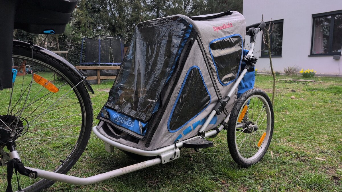 Predam zachovaly cyklovozik pre 2 deti. Odpruzeny, zvlada v pohode kazdy teren. Je k nemu predne koleso.