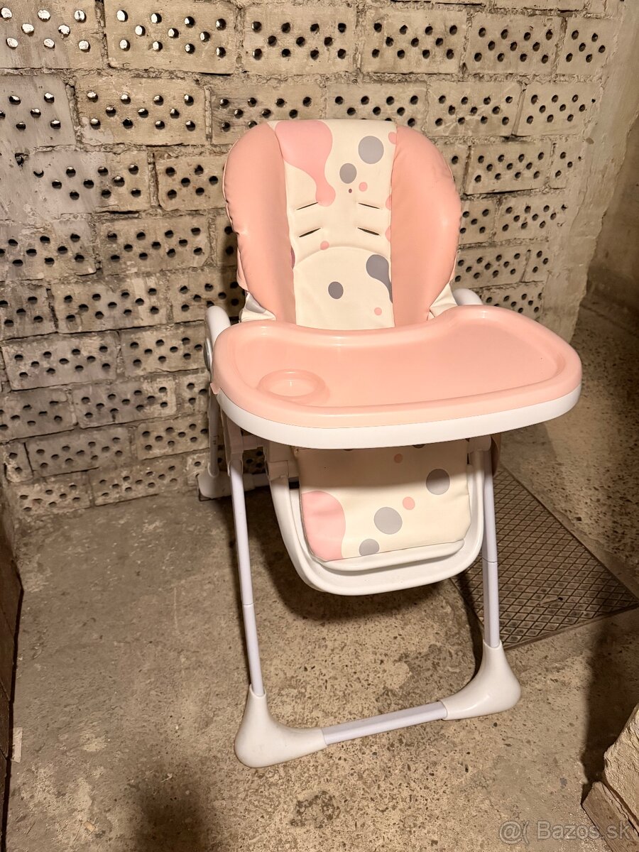 Predám používanú jedálenskú stoličku s nadstaviteľnou výšškou, operadlo a podložka na nohy sa dá polohovať. Má mierne známky používania.