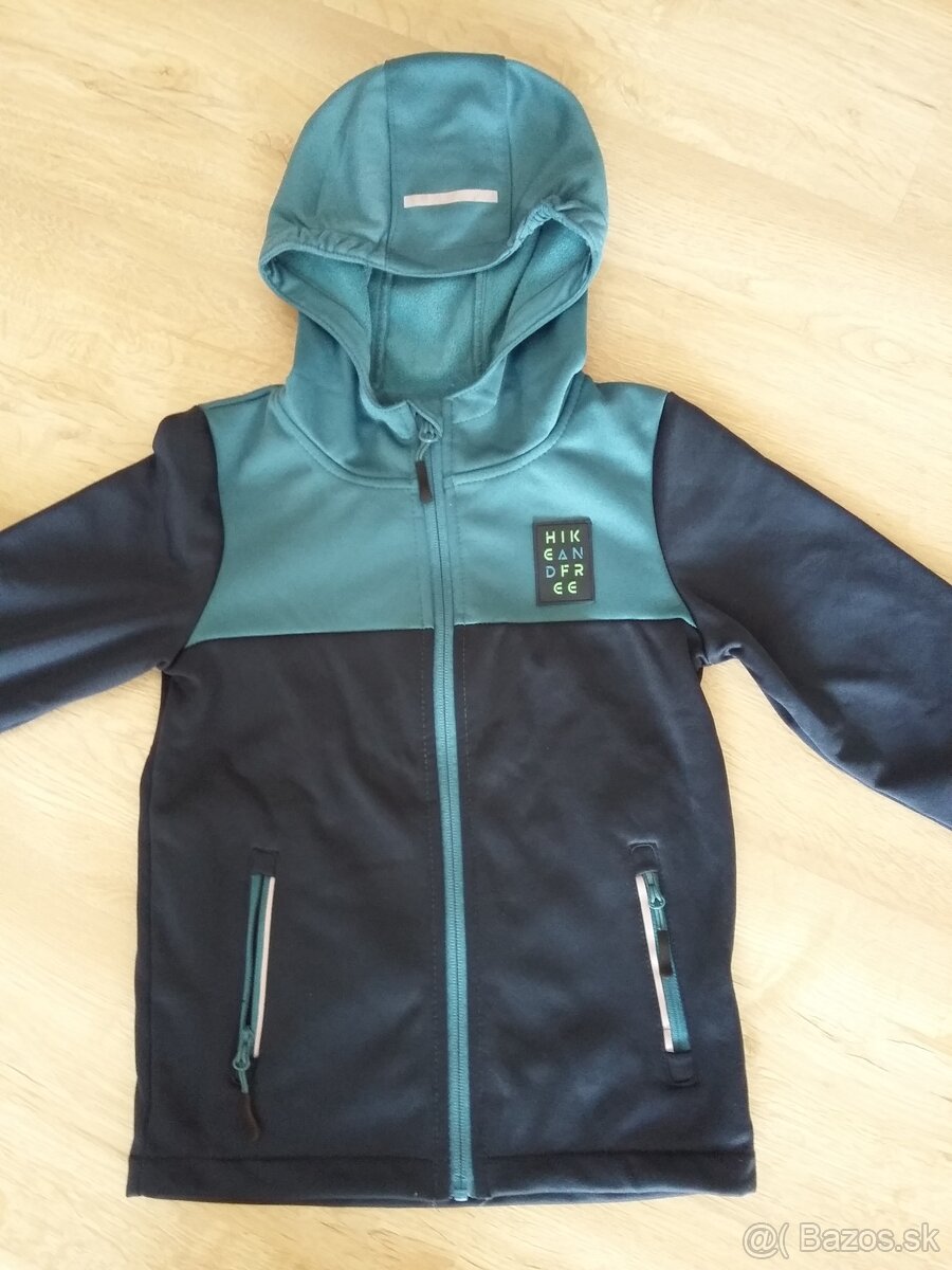 Softshellová bundička vhodná jeseň/zima/jar s miernym flísom a kapucňou v top stave min.oblečená s reflexnými prvkami. Na spodnej časti zakončené skrytou gumičkou.Z vonkajšej strany to nie je vidno takže sú zakončené rovným stehom. Na priložených fotkách vidno detaily a taktiež miery.Dĺžka celková je 49-50 cm, obvod pod pazuchami je 70 cm, dĺžka rukáva 43-45 cm nakoľko je tam aj skrytá manžeta.Po jednom dieťati.