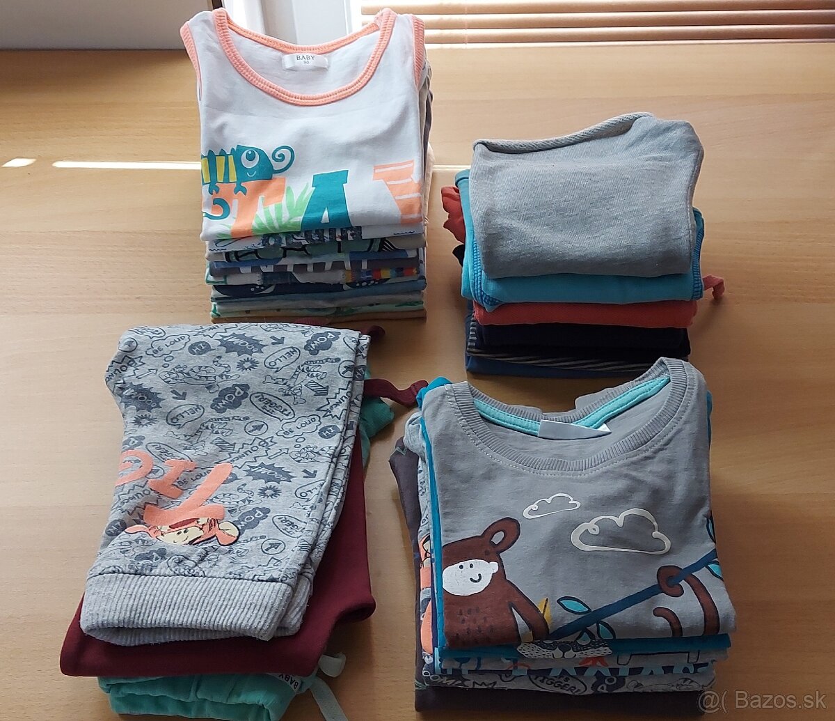 Predám balík detského oblečenia veľkosť č. 74-98. Veci sú nosené, bez dier, žmolkov. Vhodné na donosenie okolo domu, na záhradu. Balík obsahuje 27 ks oblečenia ( tričká, kraťasy, tepláčky, mikiny)