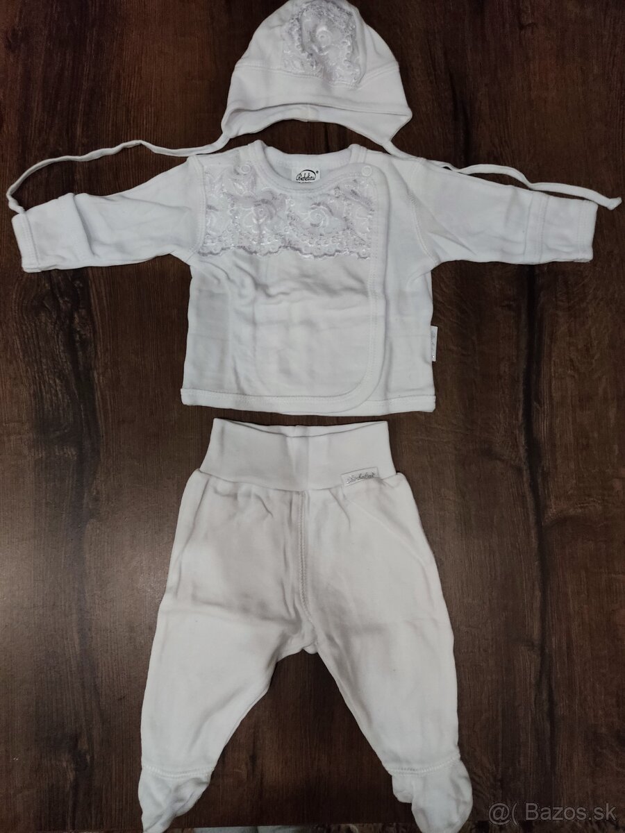 Krásna snehovobiela súprava na krstiny. Použitá len 1x na krste. Veľkosť 56. Slovenská značka Richelieu.
