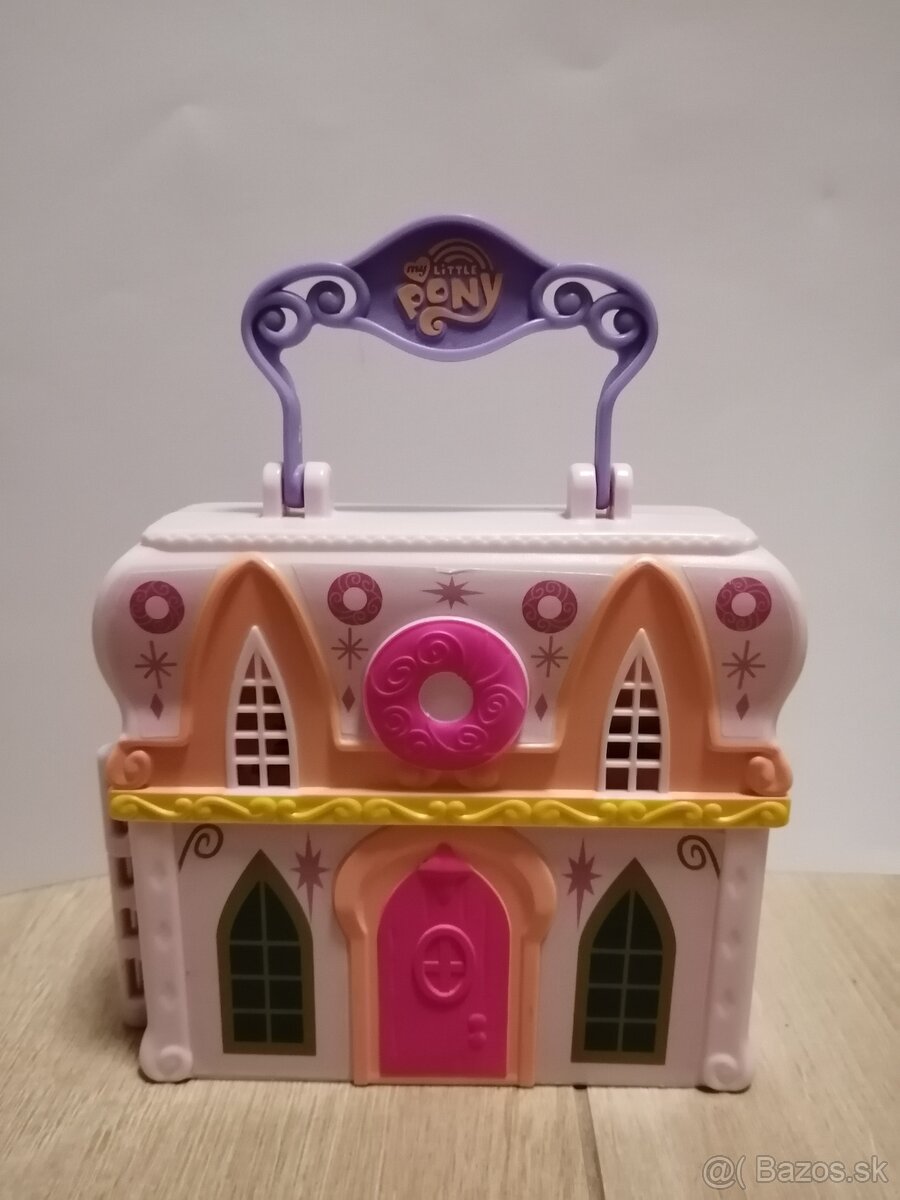 Mini zatvárací domček, cukráreň, kufrík my little pony, vnútro sú všetko nálepky.