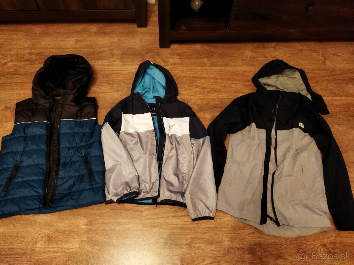 Vesta v. 134, bunda v. 134/140 a väčšia bundička. Cena spolu 5€. Pozrite si aj ďalšie moje inzeráty :)