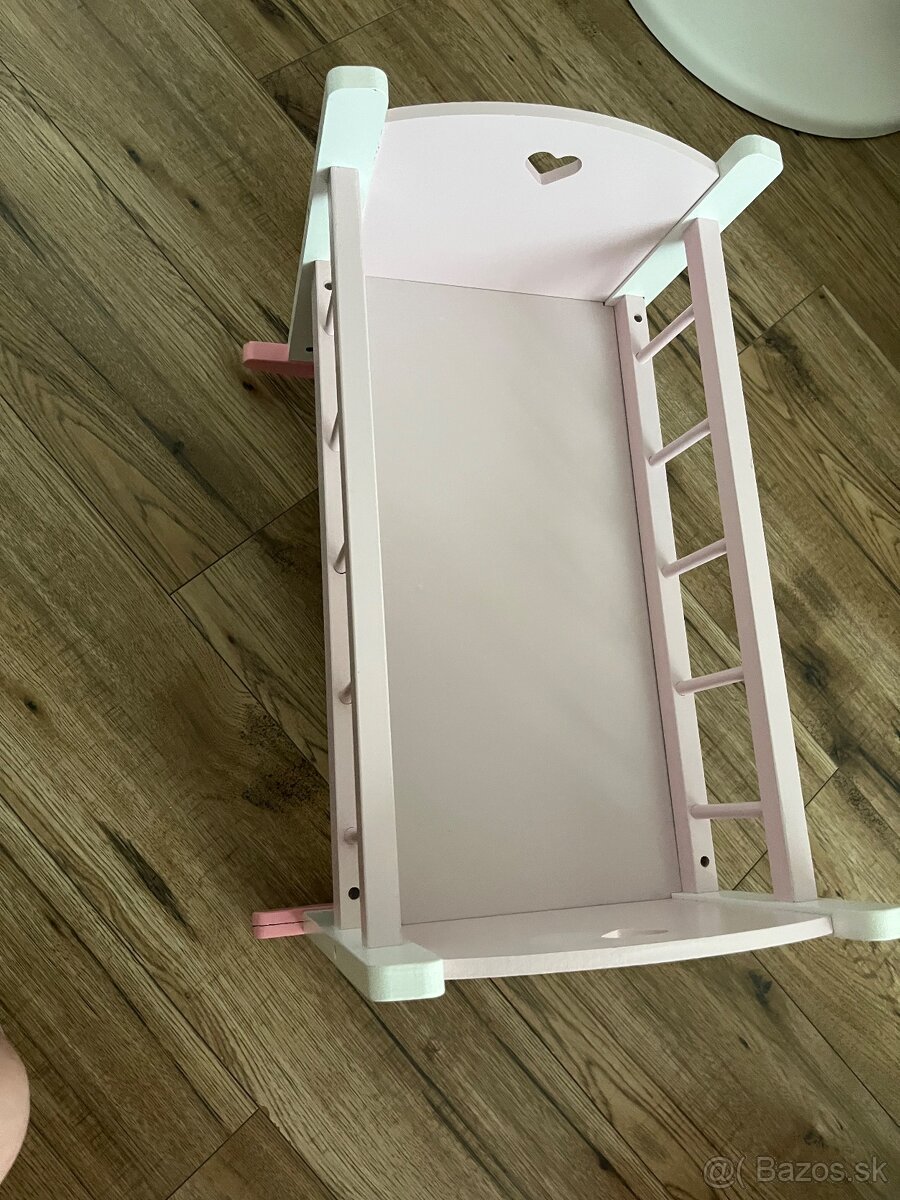 Drevená kolíska - [24.2. 2026]Pekný stav, zlomená doska v postieľke bola zalepená. Postieľka sa dá naďalej používať na hranie s bábikami.