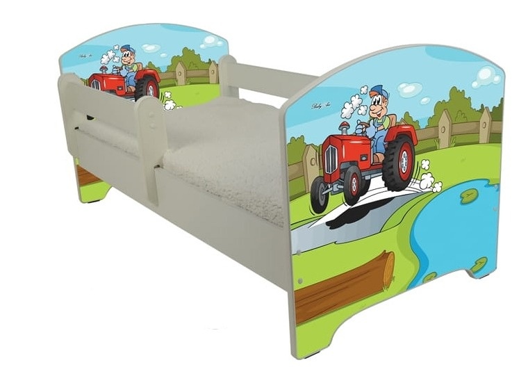 Detská postel je určená pre detičky od 1 roka.Posteľ má dve odoberateľne zábrany, kým je dieťatko malé vám nevypadne a keď vyrastie zábrany dáte dole. Posteľ je možné použiť aj ako ľavú alebo pravú, postavíte si ju podľa svojich predstáv. Posteľ je kompletná s dreveným roštom a 7 cm klasickým penovým matracom. Zábrany sú odoberateľné, nasúvajú sa z vrchu do boku postele, nešróbujú sa.