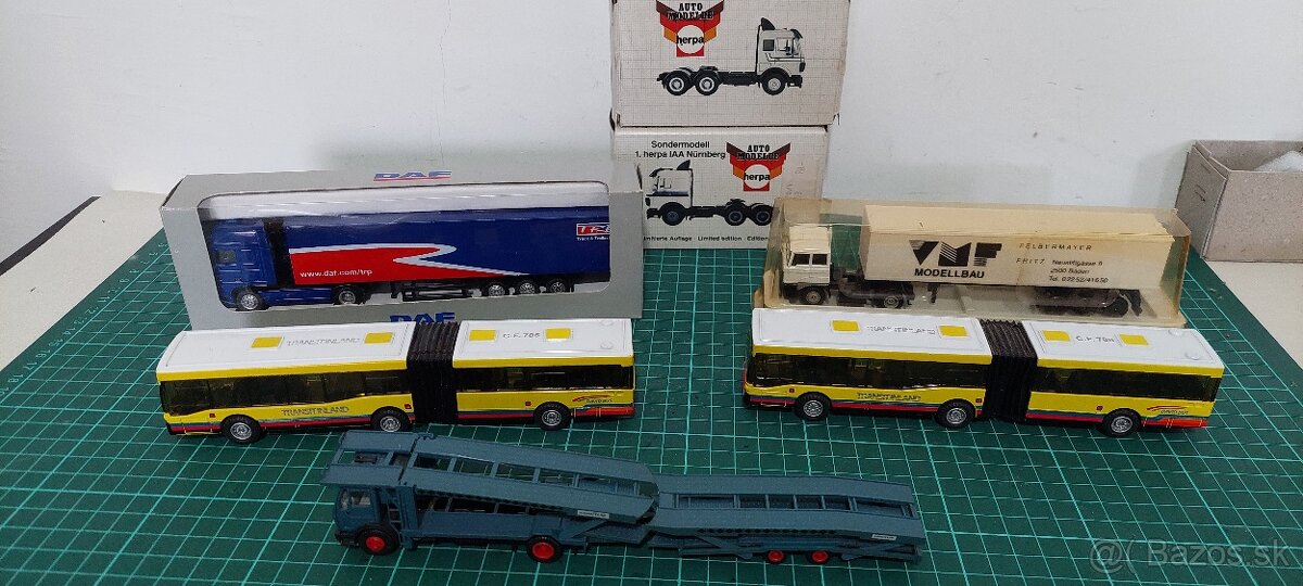 Predam modely kamionov nehrané.herpa tahače kus 10e .daf kovový 13e ,biely kamion 10e efsy.autobus 7e kus.v mierke 1.87.odpovedam na email. Autotransporter predaný