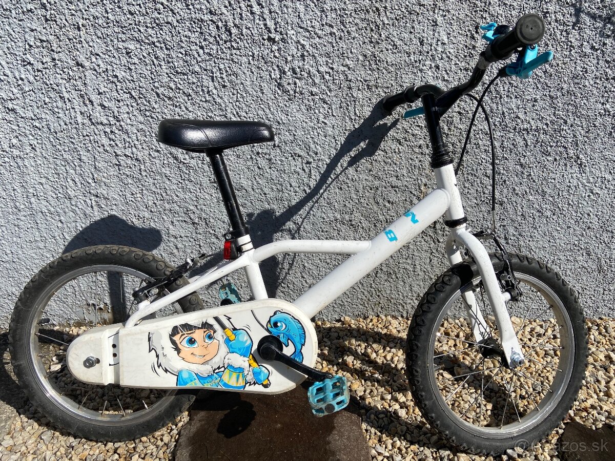 Btwin 100, 16 palcovy, vek deti:4-6, ma znamky pouzivania, ale nema funkcnr vady, vsetko je pevne, brzdy funkcne. Pridam aj odrazadlo ako darcek,