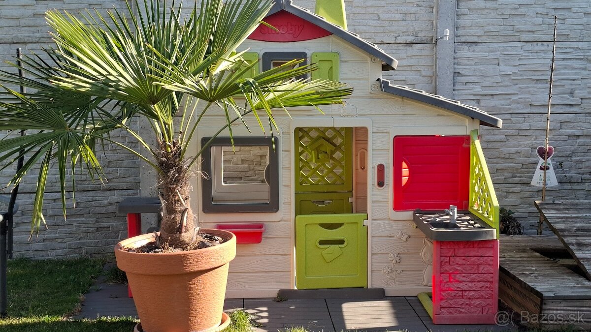 Predám 2 ročný takmer nepoužívaný, nepoškodený domček . Cena aj s podložkami. Pôvodná cena 445€. Domček Smoby s kuchynkou na záhradu, s ktorým sa zabavia chlapci aj dievčatá už od 3 rokov. Domček od francúzskej značky Smoby . Domček Smoby je navyše rozšíriteľný, takže k nemu budete môcť kedykoľvek dokúpiť ďalšie originálne doplnky. Dojem priestrannosti umocňuje 6 okien s 2 otáčateľnými okenicami, takže aj počas horúcich letných dní budú mať deti vnútri čerstvý vzduch.