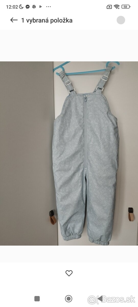 Predám oteplovacky Reserved,nepremokavé veľkosť 104,výborný stav ,malo využite cena 15 euro a bundu zimnu zateplenu Coccodrillo,malo nosena všetko výborný stav .. veľkosť 110 cena 20 euro