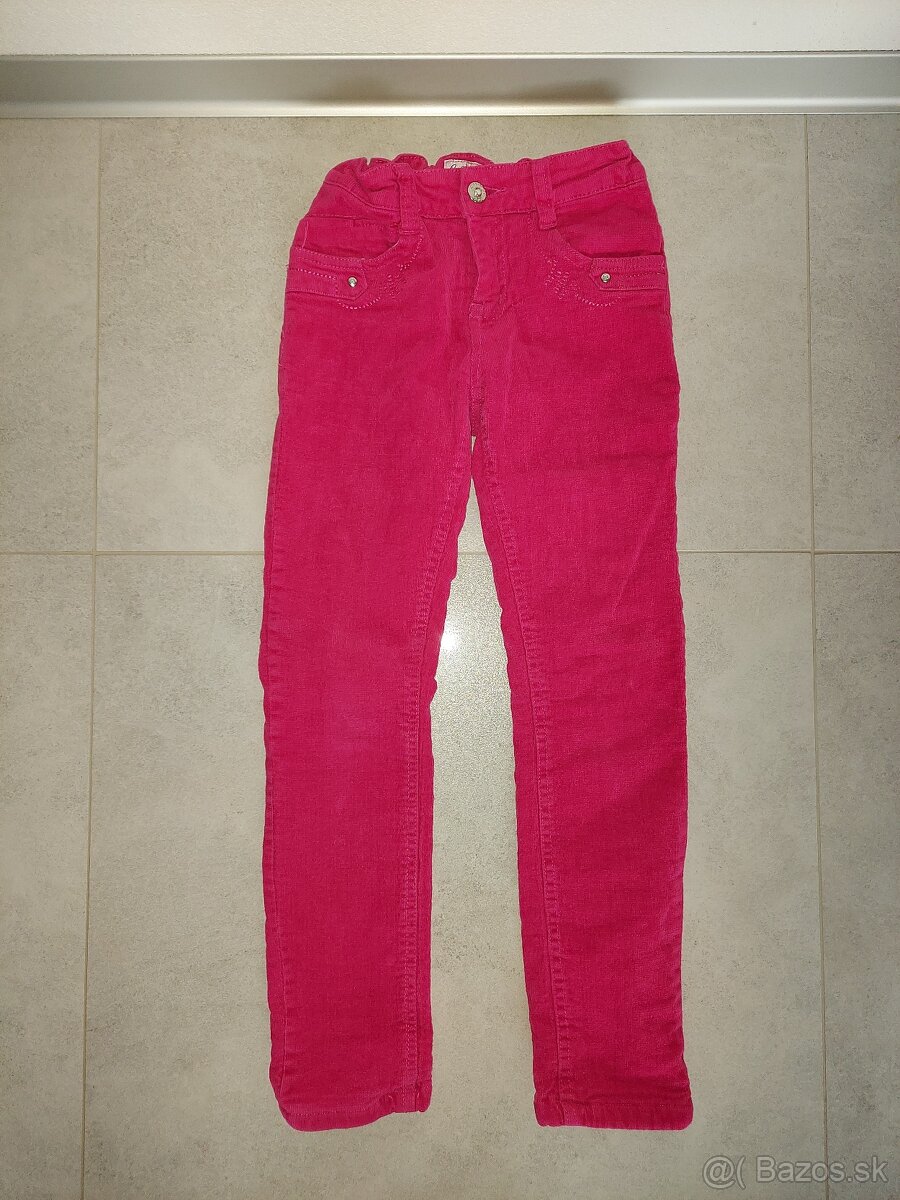 Predám zateplené dievčenské nohavice sýtoružovej farby (veľkosť 140 cm)-vnútorná dĺžka nohavíc je 58 cm, vonkajšia 80 cm, od strednej časti pásu po spodok je to 77 cm.