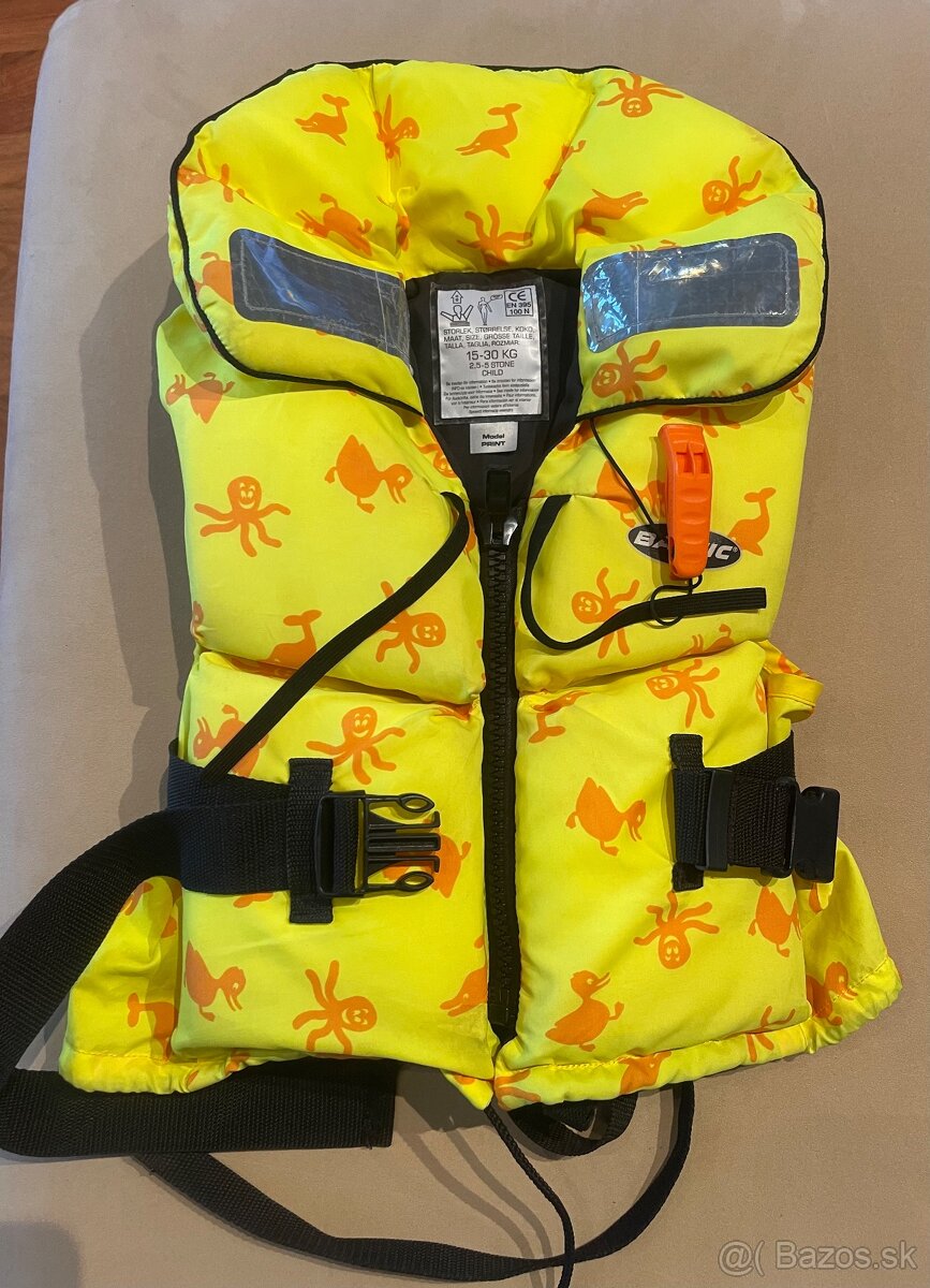 Predám detskú záchrannú vestu značky BALTIC vhodnú pre deti od 15 do 30kg. Vesta bola používaná minimálne, nemá žiadne poškodenie ani známky opotrebenia.