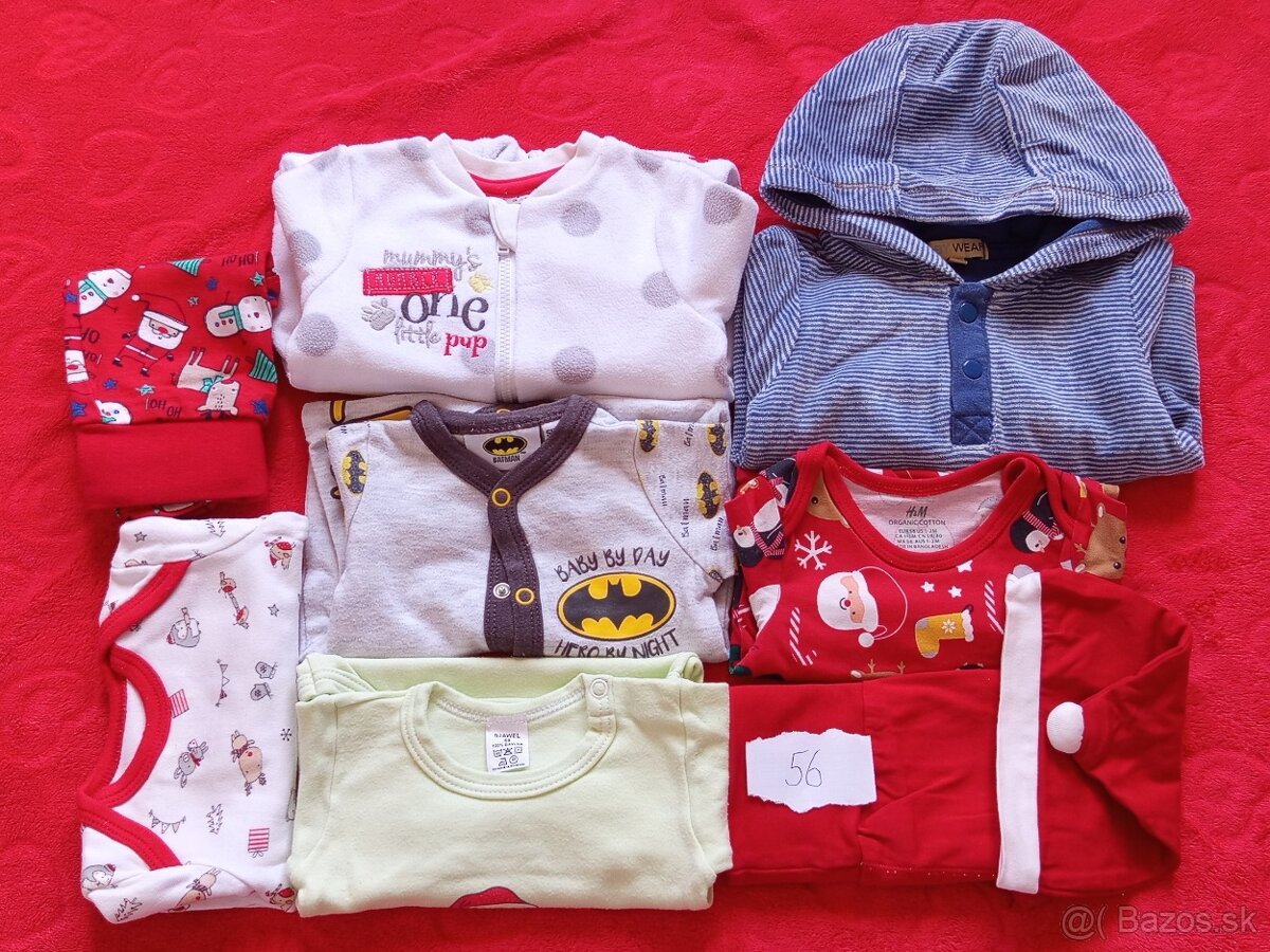 Predám oblečenie po synovi, ktorý je narodený v decembri. Všetko veľkosť 56 + modrý uterák s kapucňou. Všetko spolu ako balík.