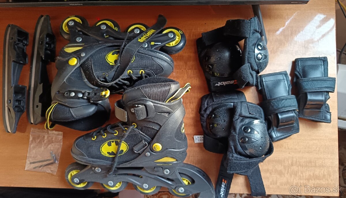 Predám detské inline korčule s motívom Batman + kompletnú sadu chráničov (kolená, lakte, zápästia).