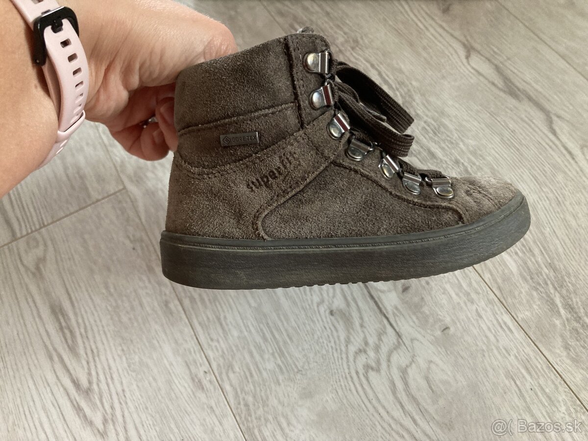 Kvalitné, nepremokavé, s GORETEX membránou. Vhodné na prechodné obdobie, ale aj miernu zimu. V dobrom nosenom stave, akurát na jednej topánke bok podrážky oškretý, viď foto (nemá vplyv na funkčnosť). Vnútorná dĺžka 16,7 cm.