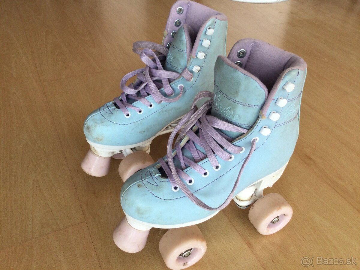 Predam kvalitne kozene detske (dievcenske) dvojradove kolieskove korcule Rookie, velkost 34, tri krat pouzite. Nova cena bola 100€.