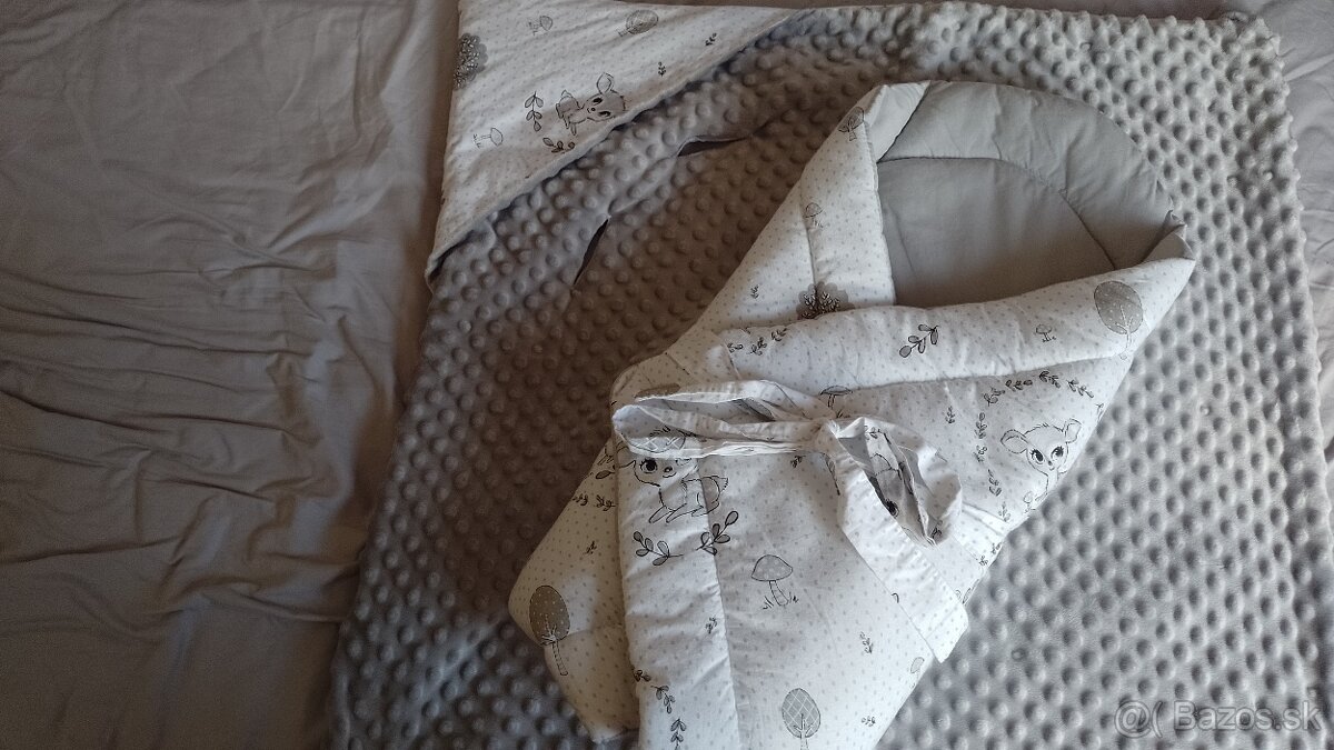 Predam zanovny set zavinovacky a deky s peknym zvieracim motivom. Zavinovacka ma vyberatelnu kokosovu vlozku, takze babatko pri lezani ma rovny chrbatik. Deka je vhodna do vajicka.