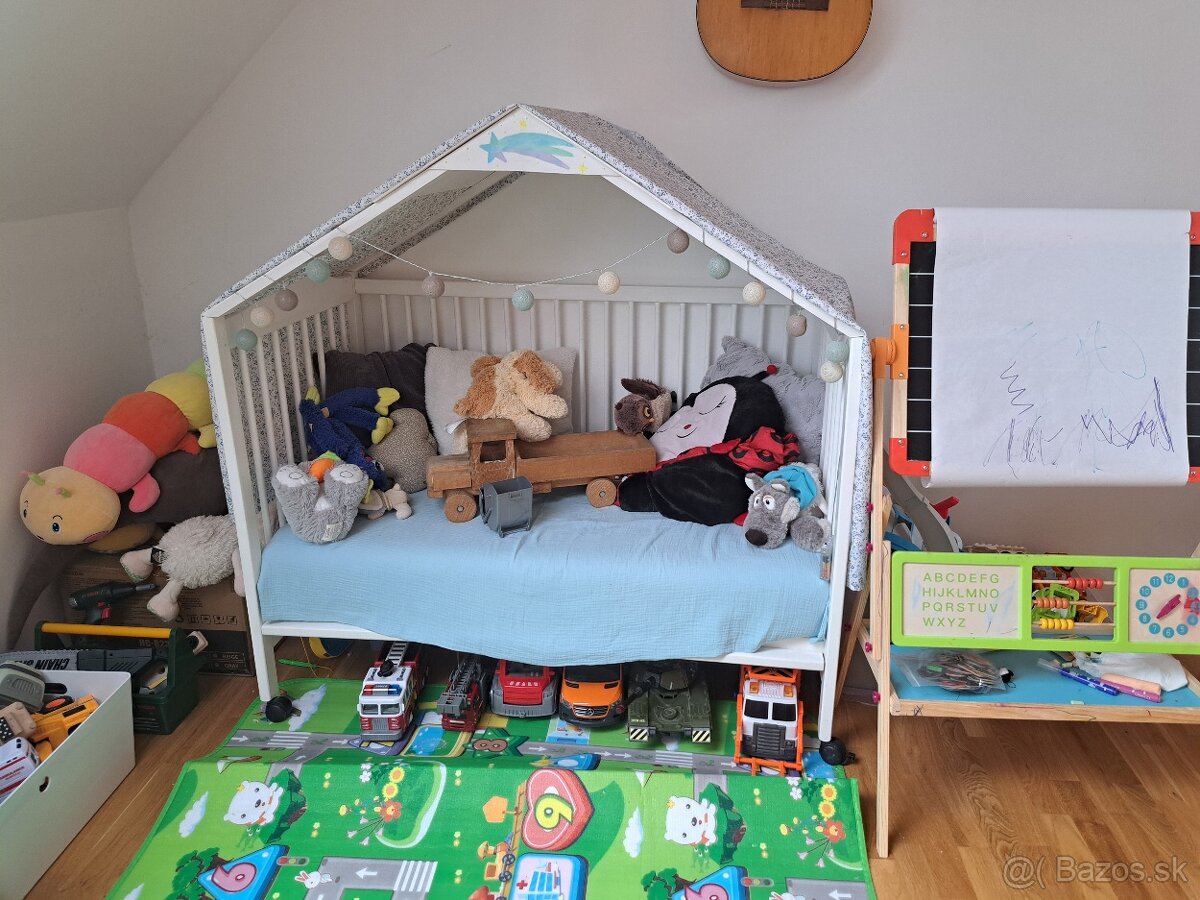 Predam detsku pohovku-domcek prerobenu z klasickej postielky. Je to vlastna vyroba, takze nie uplne dokonala, ale u nas oblubena a urcite este niekomu spravi radost. Predavam aj s matracom s nepremokavym potahom