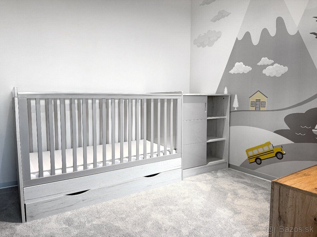 Ide o riešenie 3v1, teda detskú postieľku do 4 rokov, tradičnú postieľku a postieľku na zemi v štýle Montessori pre batoľatá.