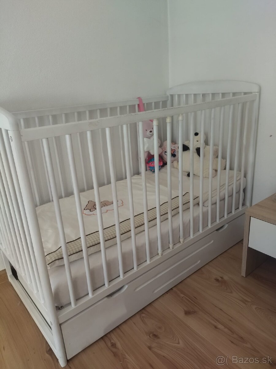 Detská postieľka - [29.3. 2026]Predám kvalitnú detskú postieľku, v cene aj nový matrac, ktorý bol používaný 1 rok. Matrac je vytepovaný. Postieľka má od zakúpenia jednu vadu - cca 1 cm odštiepnuté z rohu (viď foto), inak bez poškodení.