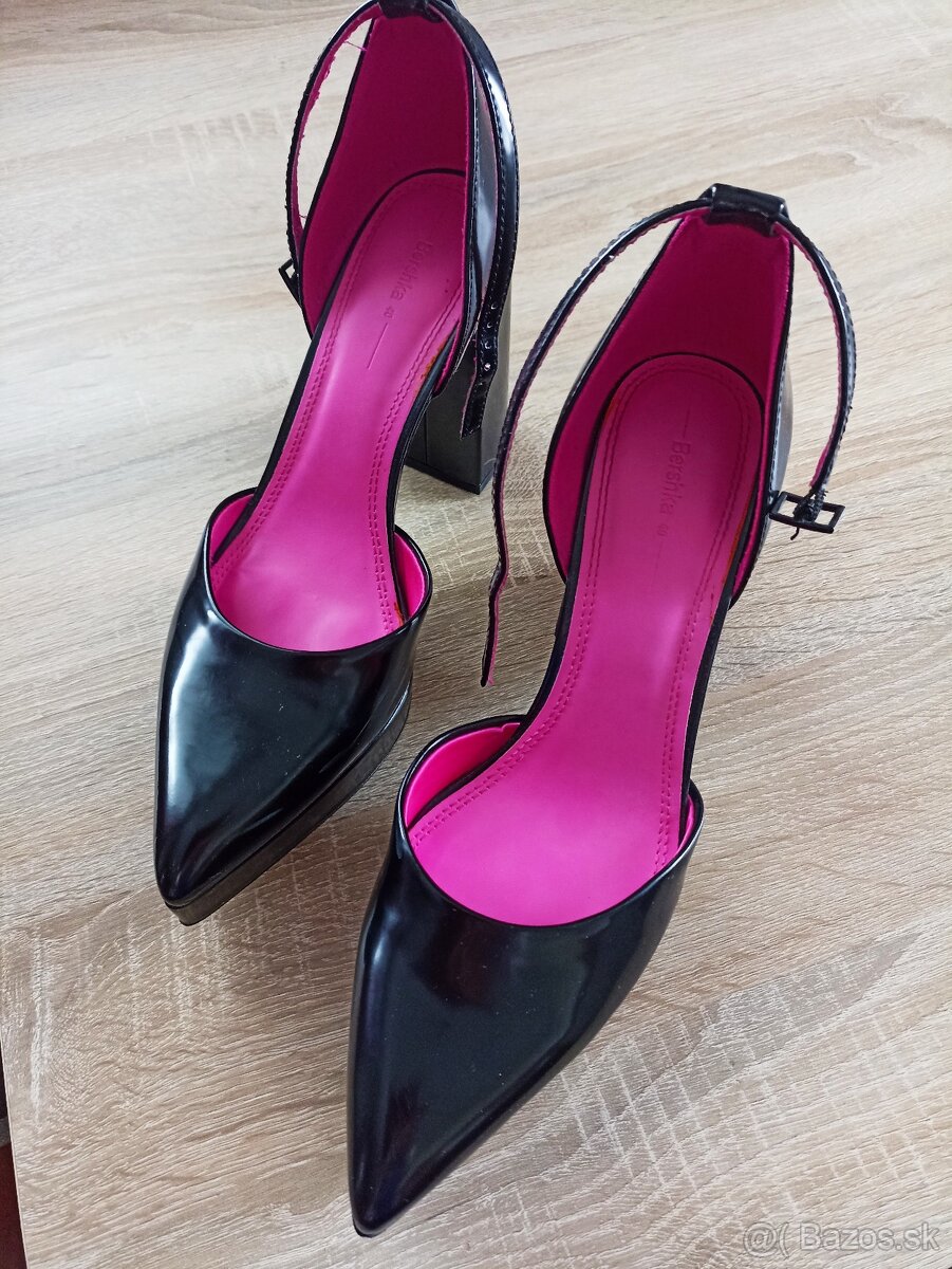 Predám topánky na platforme na podpätku, číslo 40, BERSHKA, cena 25 eur. Na boku sú povrchovo obšuchnuté, žiadna iná vada, obuté 2x.