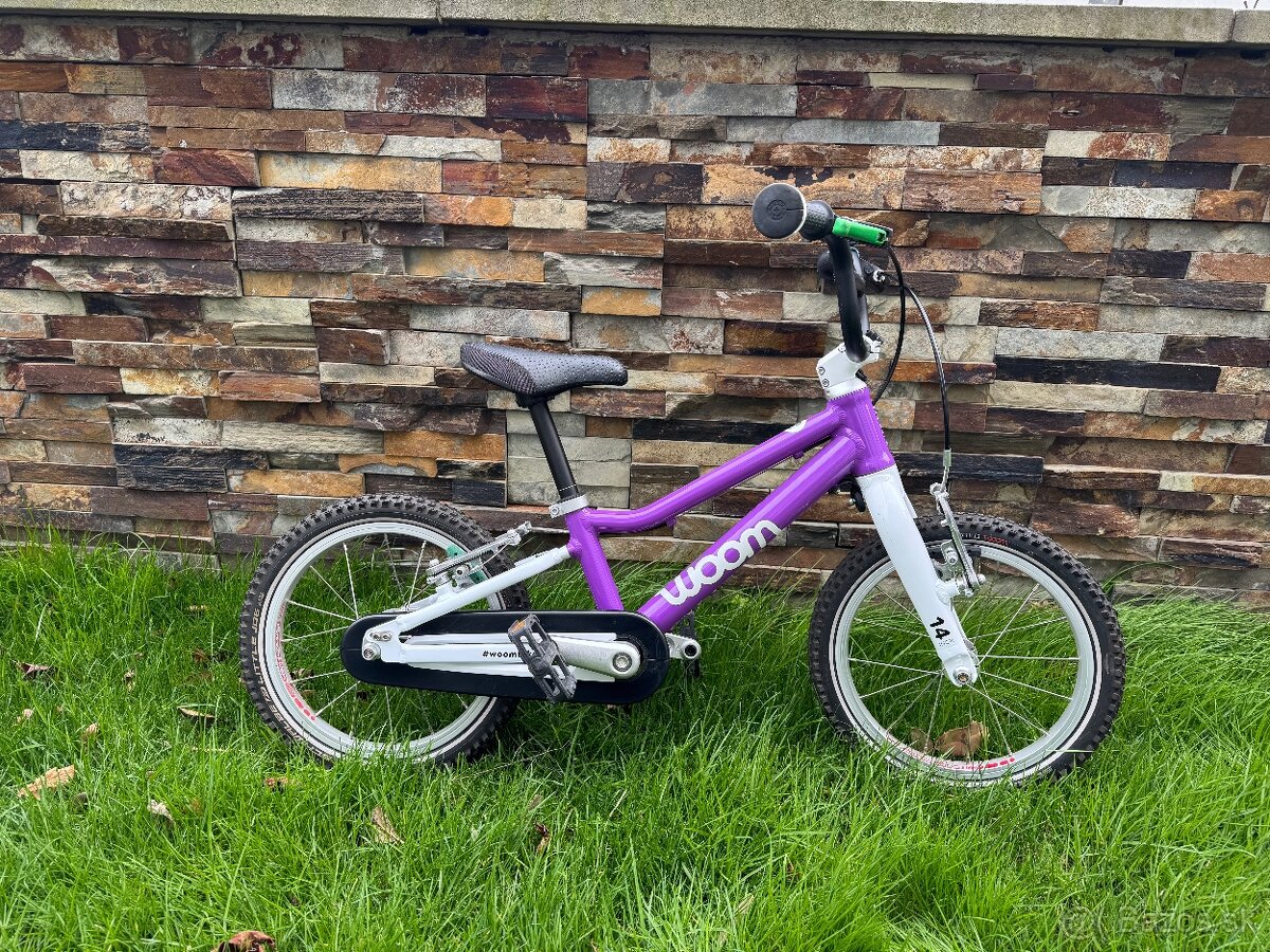 Predám detský bicykel Woom 2 vo veľmi dobrom stave ( skrabanec pouzivanim,inak vyzera ako novy).