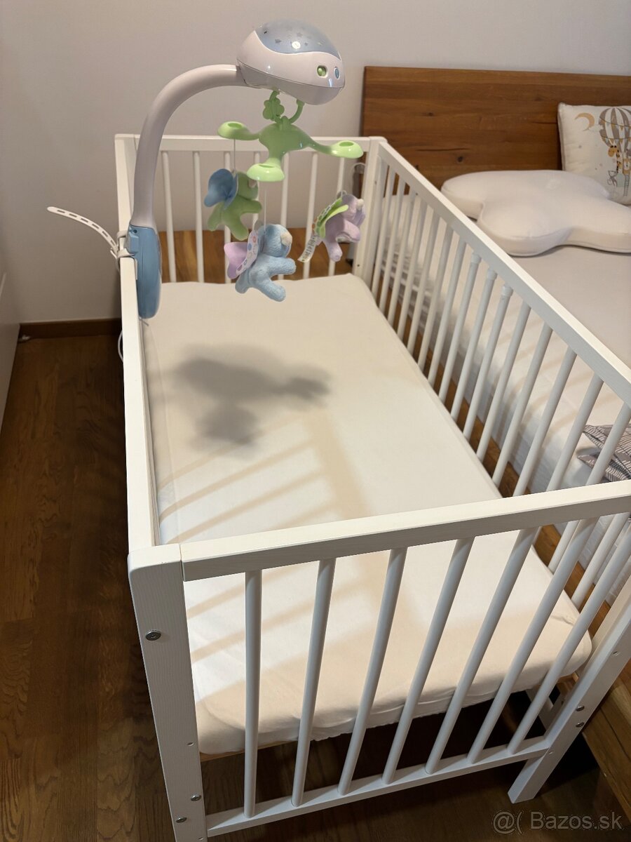 Detská postielka IKEA Gulliver - [29.3. 2026]Predám bielu detskú postieľku IKEA Gulliver v dobrom stave. Rošt postieľky sa dá umiestniť do dvoch rôznych výšok. Keď je dieťa väčšie, jednu bočnicu je možné odstrániť, takže postieľka slúži dlhšie.