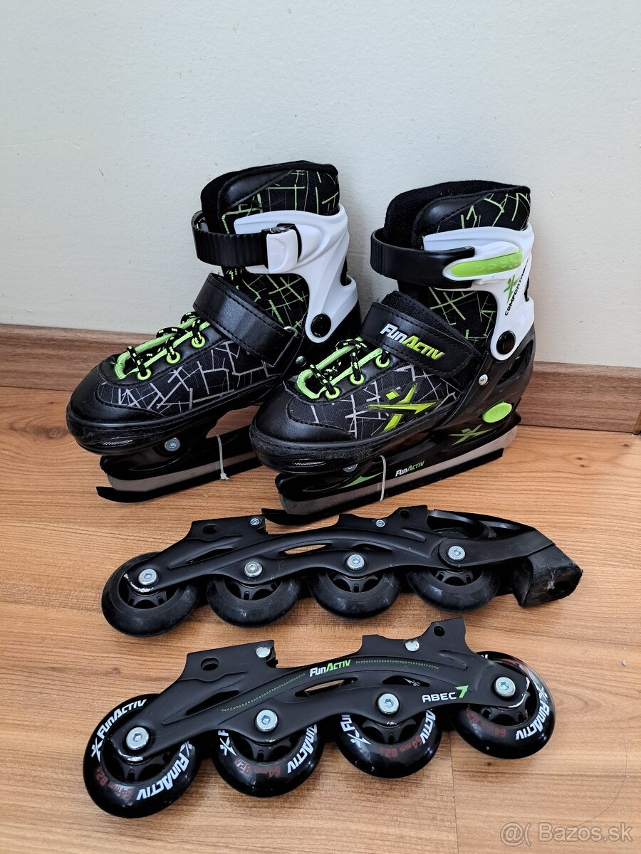 Predám rastúce korčule 2v1 (kolieskové aj ľadové), použité 1x. Nastaviteľná veľkosť 30-33. Osobný odber Bratislava - Podunajské Biskupice.
