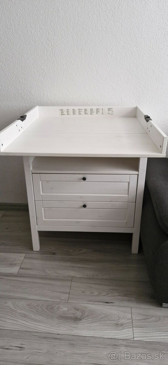 Prebalovacia komoda ikea - [13.3. 2026]Predám prebalovaciu komodu z ikei vo výbornom stave, z boku sú na nej háčiky so zvieratkami, možnosť kúpiť aj s prebalovaciu podložkou za 165 €