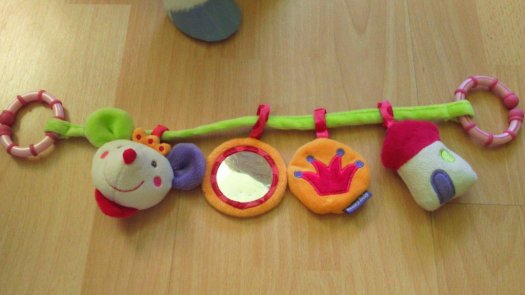 Mačka vydáva zvuky/melódie. Papagáj a motýle sa dajú zavesiť na rôzne miesta, možné kombinovať zostavu. Možnosť prania v práčke.