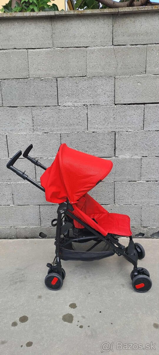 Predám 2,5 roky použitý červený kočík Peg Pérego Pliko Mini v dobrom stave. Sedacia časť sa dá používať od narodenia, chrbtová opierka ľahko nesklopiteľná, počet polôh: 3. Predné kolesá sa dajú otáčať. Zložený zaberie veľmi málo miesta. Strieška chráni dieťa. Má spodný košík. Má 5 bodový bezpečnostný pás. Odnímateľný poťah. Na niekoľkých miestach je trošku zašpinený.
