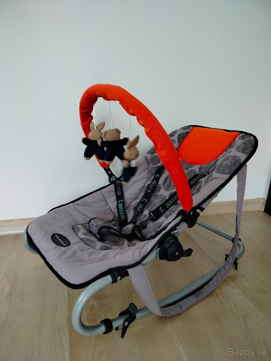 Veľmi praktické lehátko pre bábätko, dá sa dať do viacerých polôh, korýtkové ležanie, aj úplný sed. Je veľmi dobré na kŕmenie,keď dieťa ešte nevie sedieť, dáte do vyvýšenej polohy. Dá sa hojdať,ale aj zaistiť na pevno. Prítomné popruhy na prenášanie,aj päťbodový pás na pripútanie dieťatka. Využiteľný až do rok. Na hranie je aj odnímateľná hrazdička. Veľký bonus - lehátko sa dá veľmi ľahko a rýchlo stiahnuť z konštrukcie a oprať. Len osobný odber. V prípade záujmu volajte na telefónne číslo 0944158595