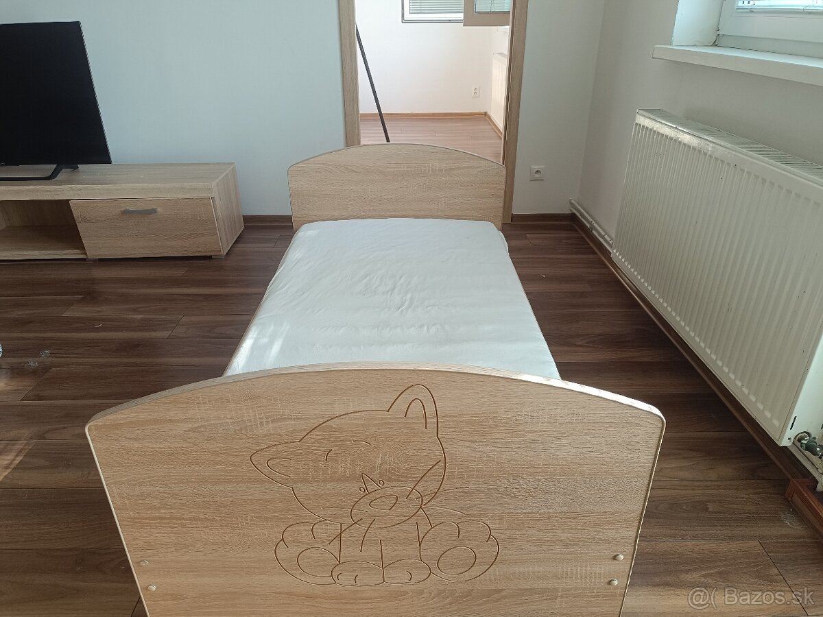 KRÁSNA DETSKÁ POSTIEĽKA S NOVÝM MATRACOM SUPER CENA - [30.3. 2026]Dobrý deň, predám krásnu detskú postieľku vo farbe dekoru dub sonoma a biela farba s pekným mackom na čele. Rozmer je 120cm x 70cm. V strede postieľky sú 3ks vyberateľných kolíkov cez, ktoré môže Vaše dieťatko vojsť alebo vyjsť z postieľky. Postieľka má 3 možnosti nastavenia úrovne výšky/hĺbky roštu ...