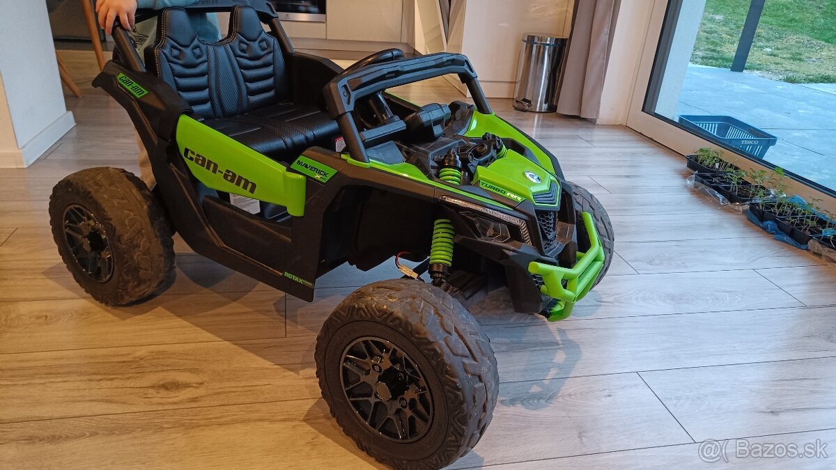Vďaka pokročilému pohonu 4x4 s motorom s výkonom 4x200 W zaručuje elektrické autíčko Buggy Can-Am Maverick účinnosť a stabilitu v teréne. Navyše, nová funkcia mení meny pohonu zo 4 na 2 motory šetrí energiu batérie, čo signalizuje, že si môže užiť dlhú jazdu.