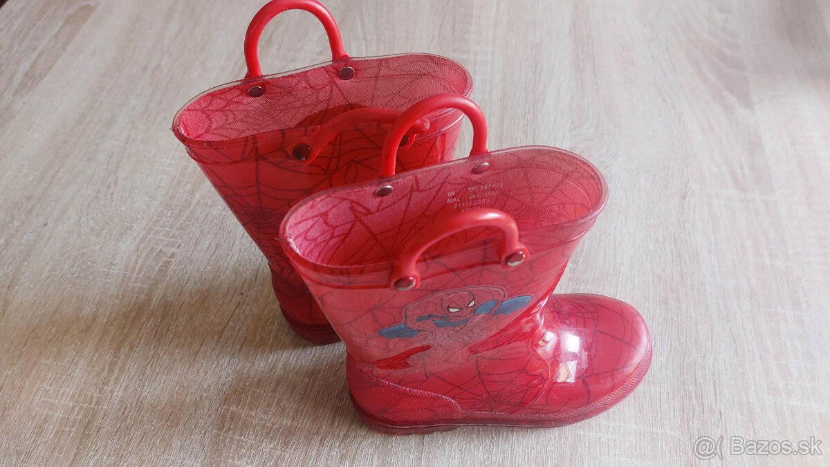 Detské gumáky Spiderman Marvel č.28, blikajúce, darujem k nim waterproof obuv, na SMS neodpovedám, dovoz možný ZA,PB,RK