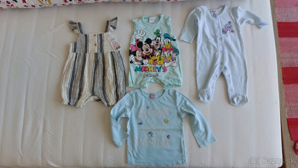 Nové letné overalíky pre bábo dievčatko, dostali sme darom a nevynosili. K tomu tričko s dlhým rukávom (veľkosť 86) a dupačky (veľk.62).