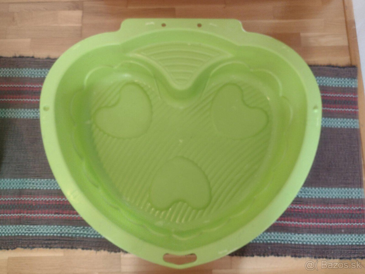 Plastové pieskovisko. V strede jednej časti je malá dierka a kraj na druhej je puknutý (nebráni v používaní). Osobný odber. Prešov, Sabinov, Lipany.