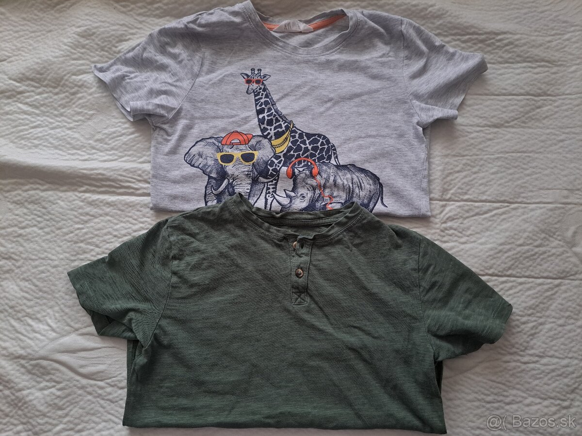 Predám 2 tričká s krátkymi rukávmi. Nosené, ale v dobrom stave. Vidno známky prania, trochu stratili tvar. Iné poškodenia nie sú. Značka: H&M. Veľkosť: 134/140. Cena spolu: 3 €.