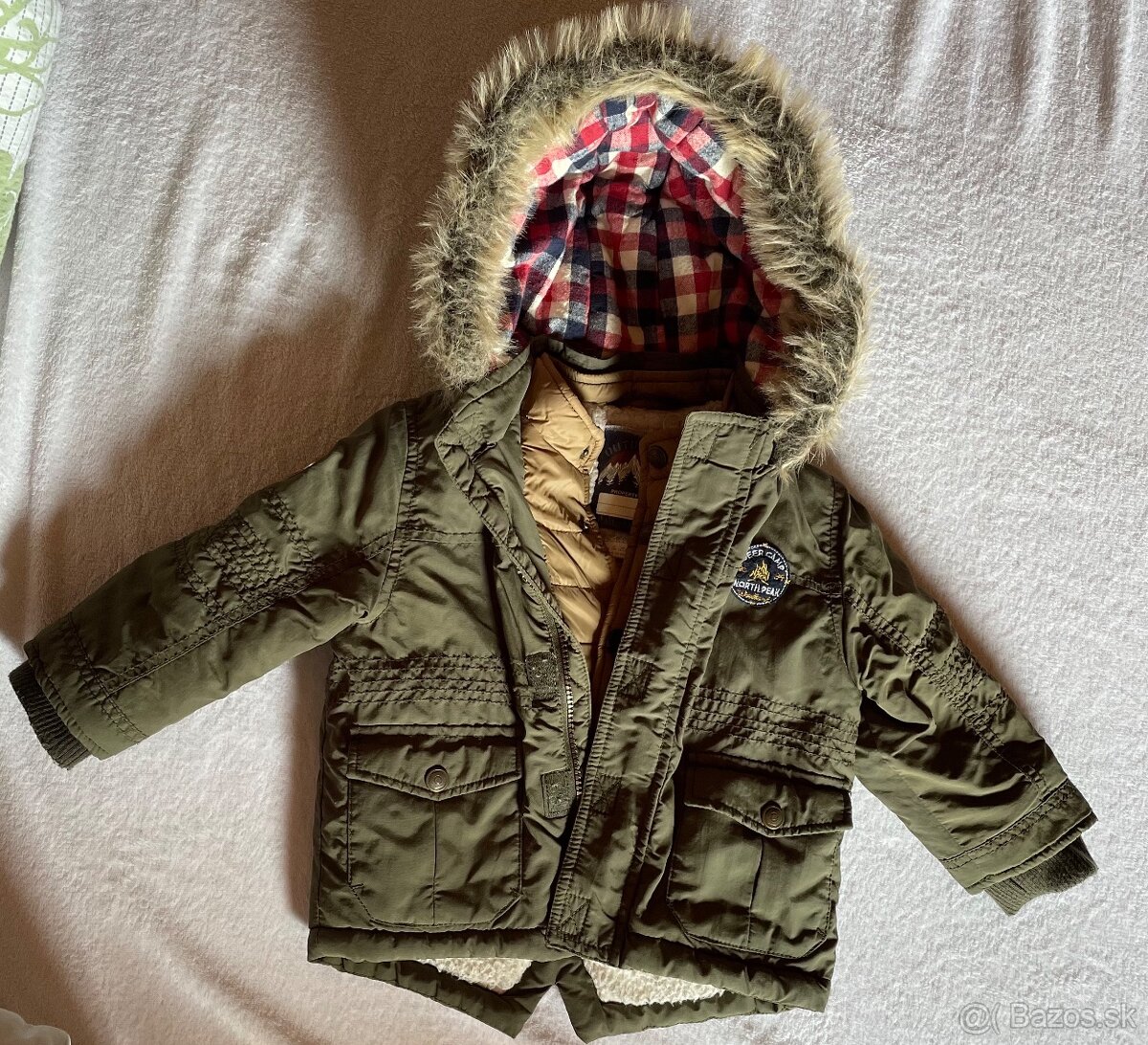 Predám detskú zimnú bundu veľkosť 86 ( 18-24mes).. Bunda je kaki farby, vo vnutri je zateplená kožušinkou a má dvojaké zapínanie.. Na dobierku neposielam ( cena+poštovné alebo osobný odber)
