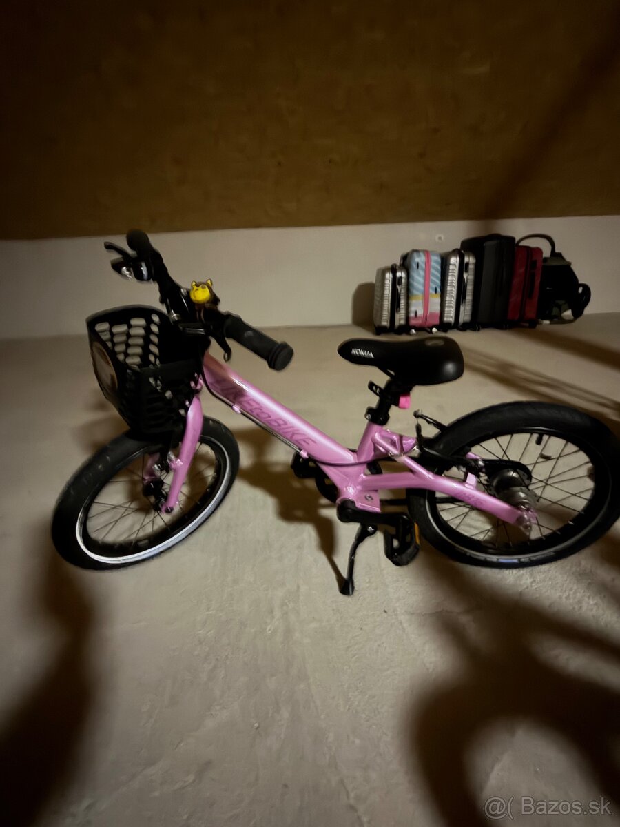Detský bicykel 16” – ružový, s košíkom, pekný stav, jazdený jednu sezónu
