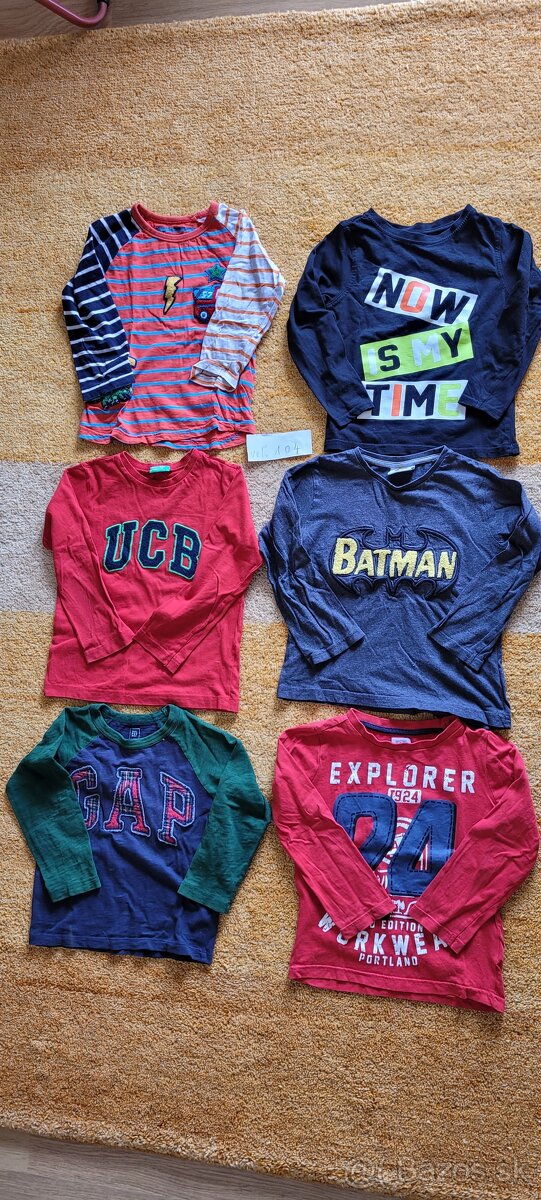 Chlapčenské tričká,dlhý rukáv, vel.104, cena 6€ za 6ks.