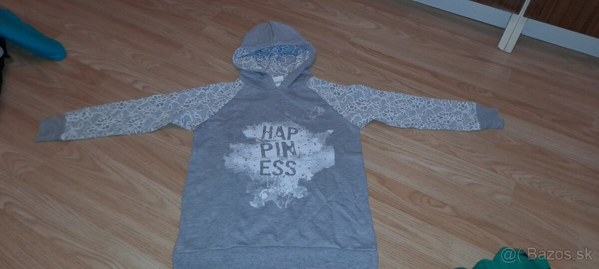 Hunata teddy mikina H&M - 146/152 - [30.3. 2026]Predam hunatu teddy mikinku s kapucnou zn. H&M, velkost 146/152, krasna svetlotyrkysova farba. Super stav, na laktoch trpchu "ulezana" latka - vid foto.