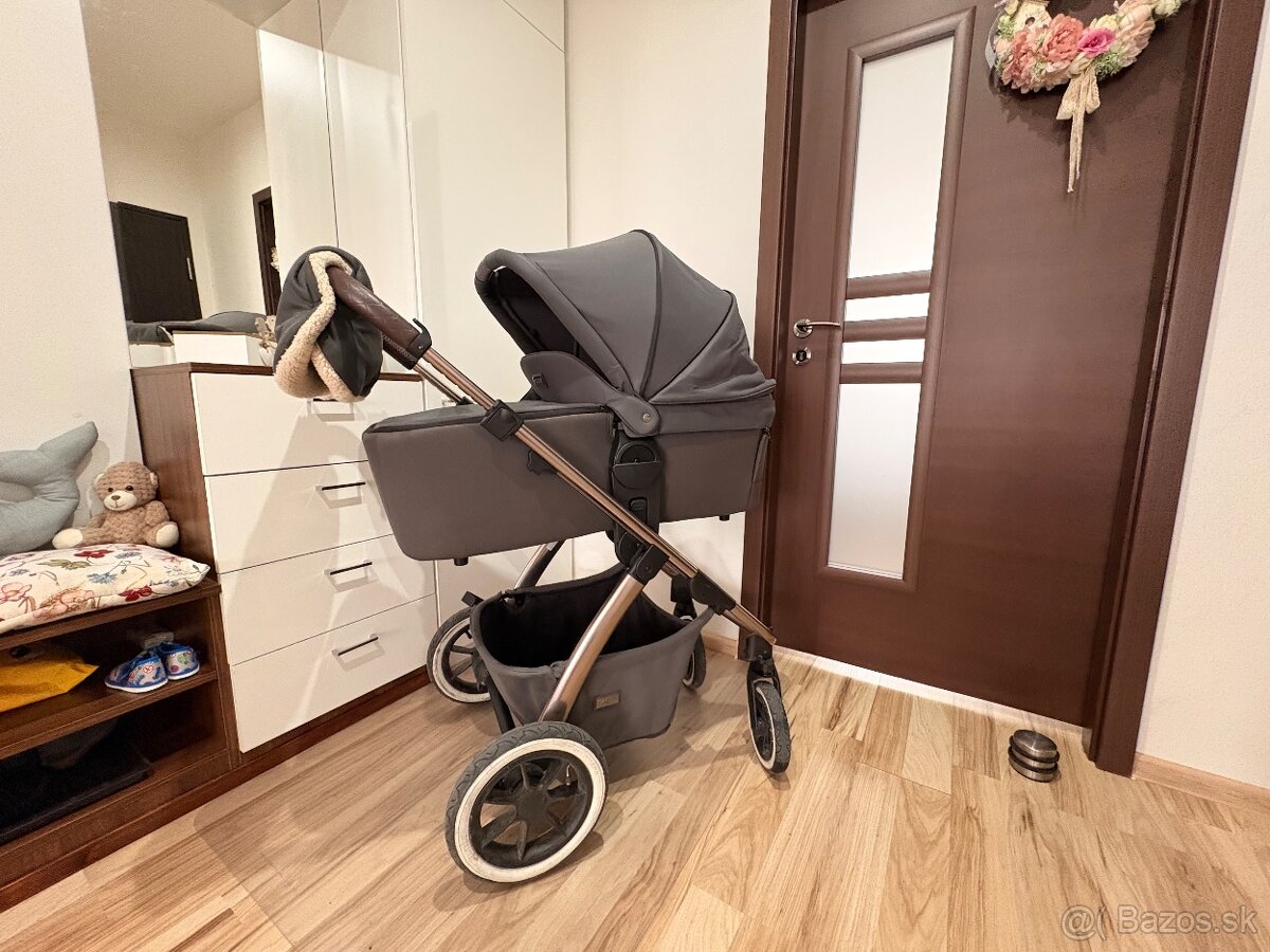 Predám kočík Moon Relaxx po jednom dieťati v perfektnom stave - vanička + športová časť. Rukoväť nepoškodená. Vetracie časti na vaničke, strieške aj na športovej časti- vid foto. Farba antracitová, podvozok rosegold. Prémiový matrac zo spodnej strany drobné nedokonalosti- viď foto. Nafukovacie kolesá, čo ocenia najmä mamičky v teréne. Kočík je veľmi spratný v rámci prepravy. Kočík predavam s vajíčkom Britax, (sú k nemu aj adaptery), rukávnik a fusak na ktorom sa dá odopnut vnútorná hrubá vložka a tak je možné použitie aj na jar/ jeseň či zimu.