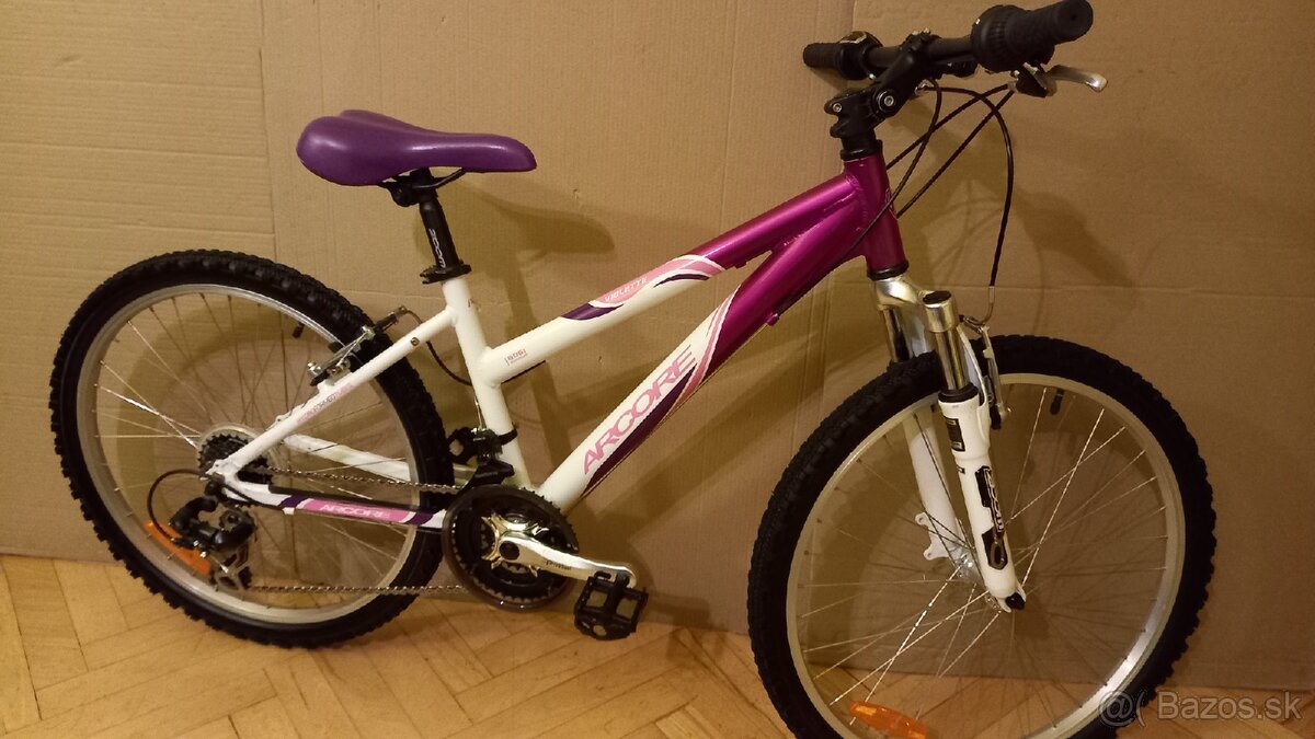 Predám dievčenský horský bicykel Arcore Violette 24" pre vek 7-12 rokov, ľahký hliníkový rám, prevody 3x7, super stav. 0949453377
