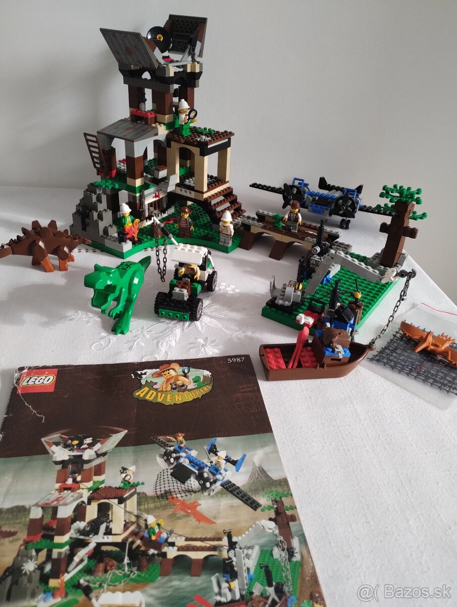 kompletné LEGO Adventurers 5987 Dino Research Compound z kolekcie Dino Island z roku 2000, s originálnym návodom. stavebnica bez zápachu, z nefajčiarskej domácnosti bez domácich miláčikov