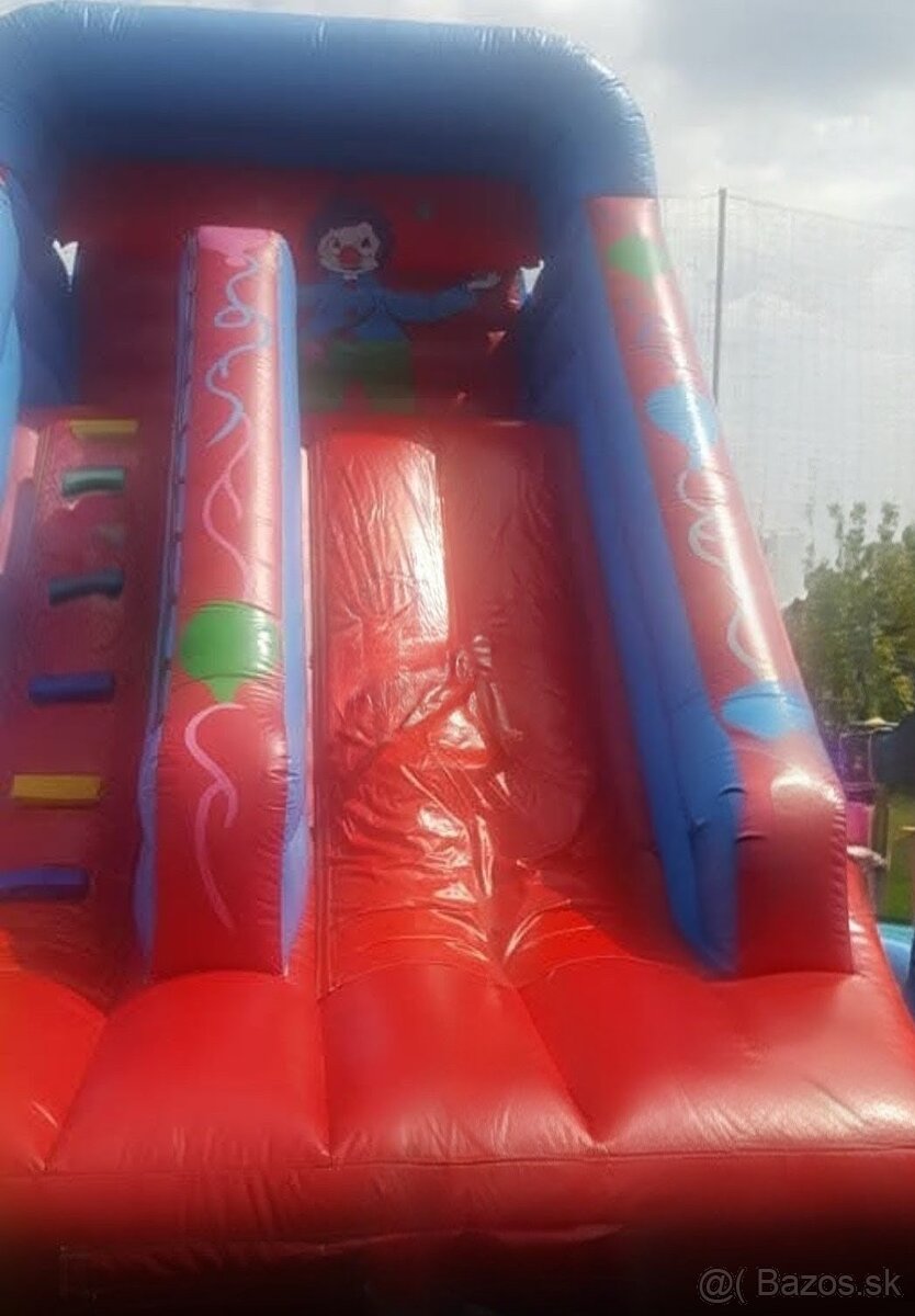 Predám Nafukovaciu šmýkalku Šašo vhodné na rôzne detské oslavy párty ľahká manipulácia zvládne aj 1osoba zmestí sa do kombi auta atrakcia je vyrobená z kvalitnej hrubšej plachtoviny spolu s vzduchovým kompresorom cena:1500eur dohoda.Tel.:0944 013 464