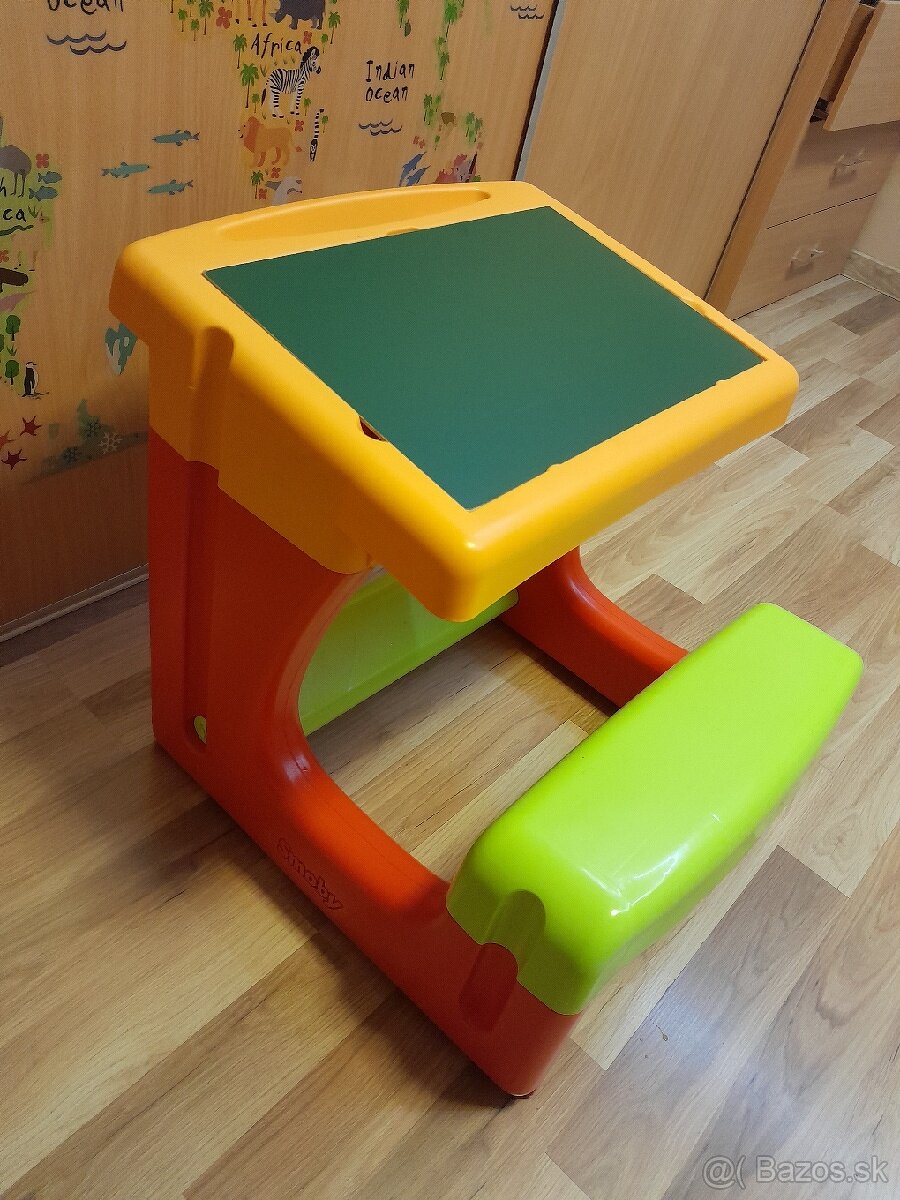 Užívaný od 2 rokov na jedenie ako vanička, do ktorej padalo jedlo a omrvinky pri samostatnom jedení dieťaťa, od 4rokov sme ho užívali na kreslenie až do 6 rokov. Stolík je pevný, dá sa aj rozložiť, má úložný priestor a priehradku na farbičky, atď. Rozmery: výška stolíka 55cm, lavice 27cm. Rozmery plochy na písanie 53 x40cm. Ideálny osobný odbera alebo môžem poslať aj Packetou za 3,40€.