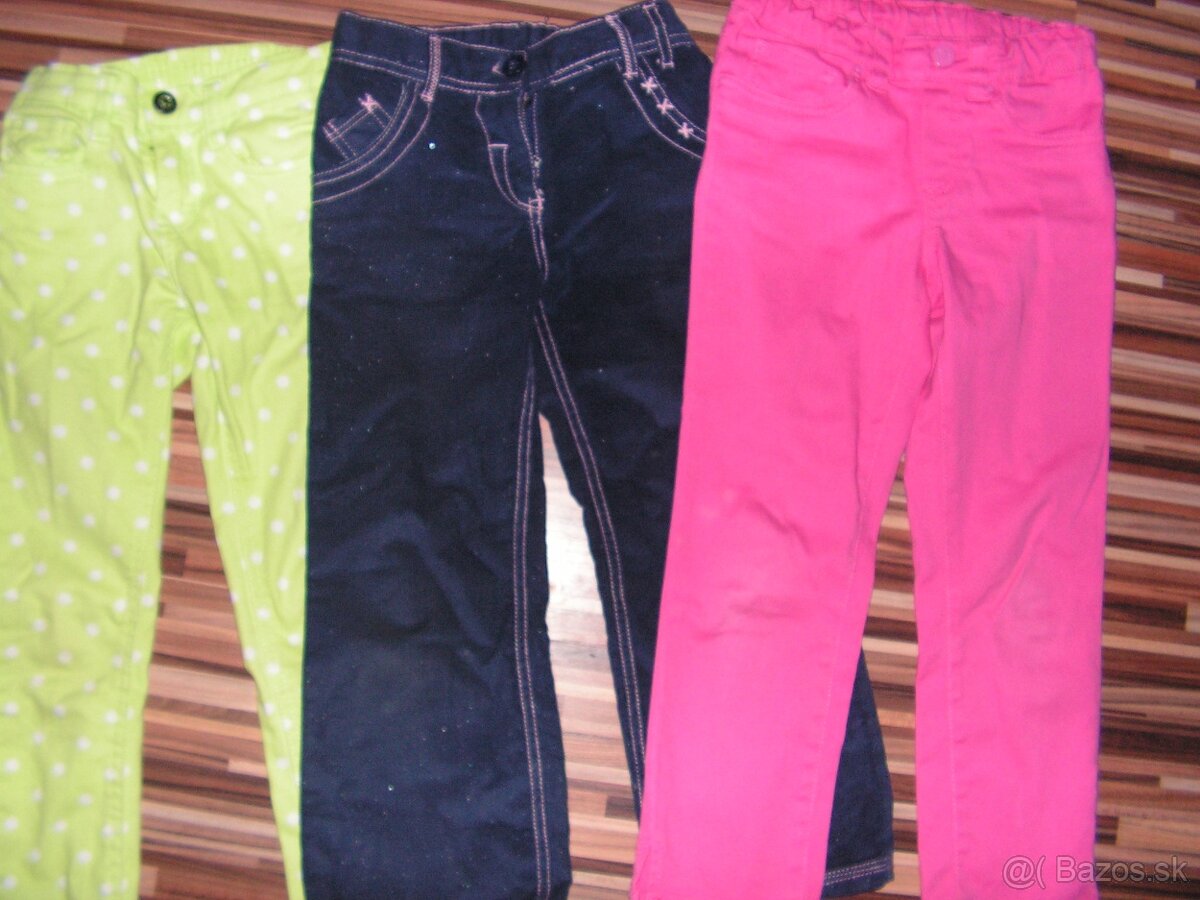 1/ tmavomodré s trblietkami, majú v páse gumku na regulovanie šírky. Veľkosť je na 4/5 R . 100 % stav. Nosené sviatočne. Cena 5€.