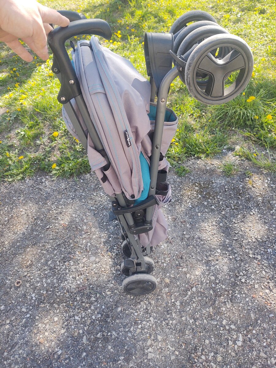 Predam zachovalu buginu polo, šedo- tyrkysová farba. Polohovatelne operadlo aj opierka pre nohy, strieska ma niekolko poloh, zatiahnut sa da az k noham.