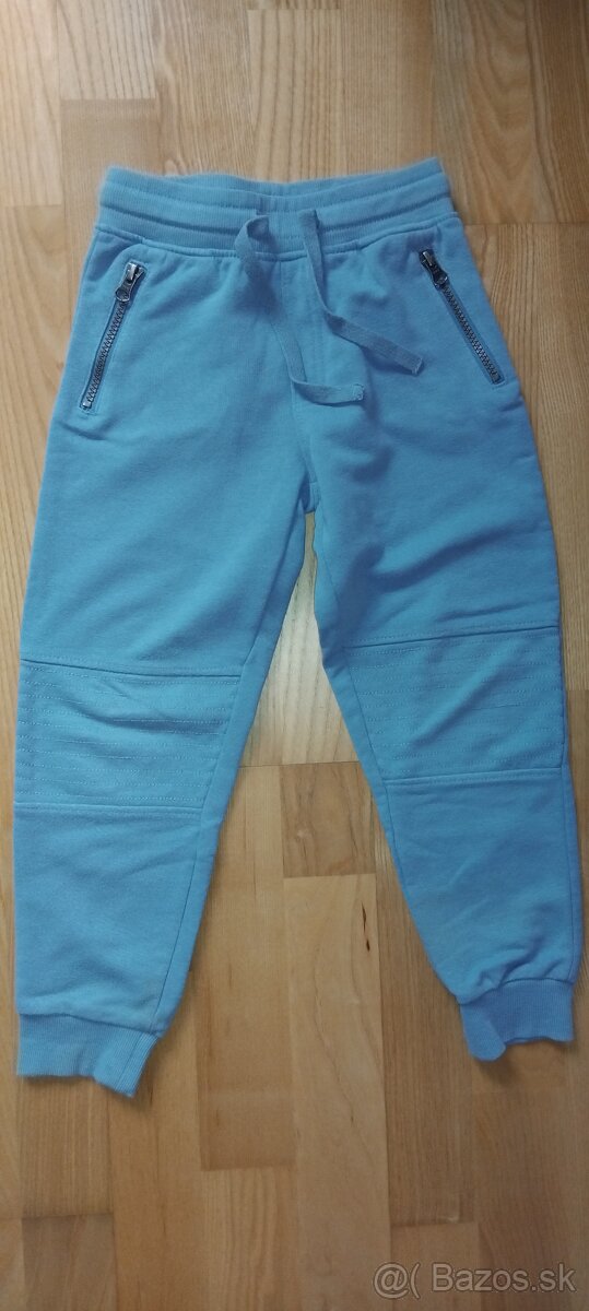 Predám tieto tepláky pre chlapčeka, značka LUPILU. Veľkosť 110/116. Nemajú poškodenie. Majú 2 vrecká na zips. Oblasť kolien je zosilnená. Ukončenie patentami a v páse guma so šnúrkou. Farba svetlomodrá.